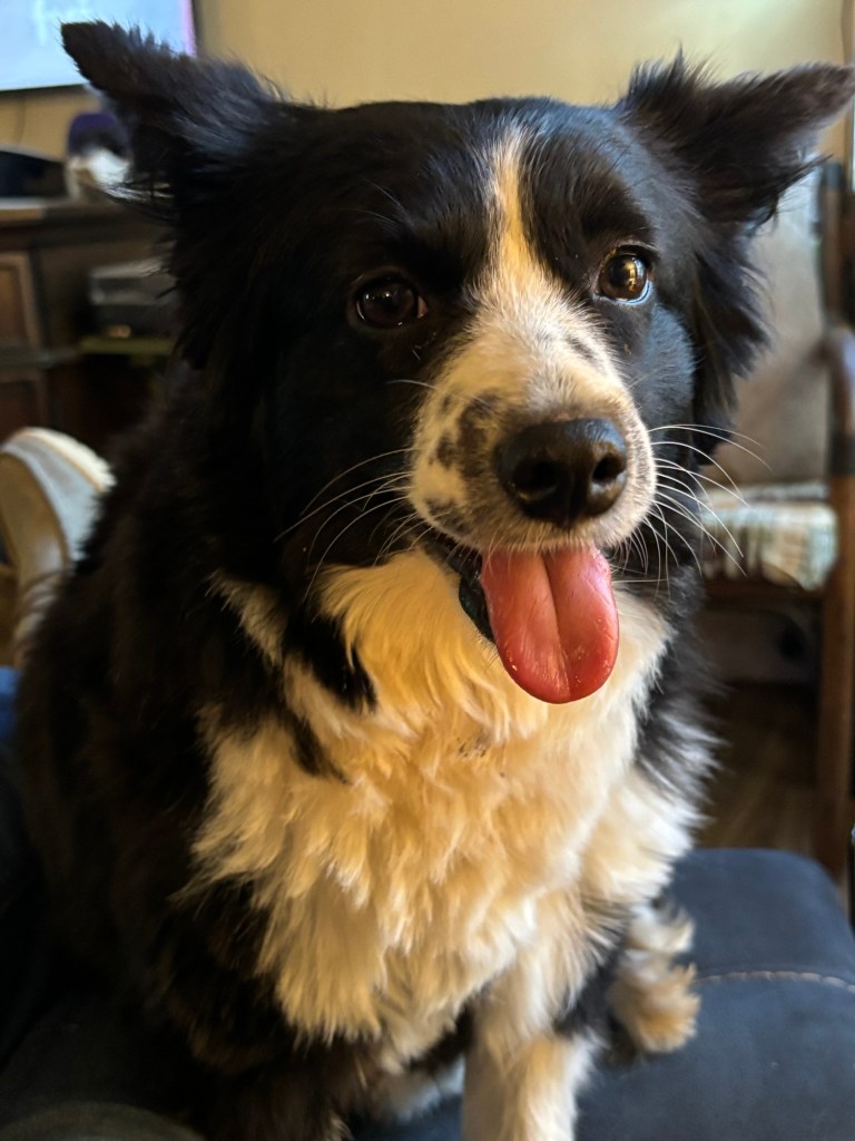 Our youngest, Penny, is a miniature Australian Shepherd and an absolute whirlwind. She’s the little sister who never stops, always stirring up trouble, convinced she’s the boss (even though she’s definitely not). She steals food, toys, and anything that catches her eye. And the walls? Oh, she chews on them. The same two spots, over and over, no matter how many times my husband patches them up. But for all her mischief, she’s the biggest cuddler. If you’re too focused on your phone, she’ll make sure you put it down—because Penny demands love on her terms. She’s a troublemaker, but she’s ours, and we adore her.